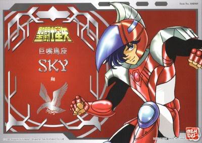 Shō del Cloth celeste (スカイクロス・翔(ショウ), Sukai Kuros Shō, Sky Cloth Shō) Su cloth es de color rojo y tiene forma de un aparato volador, inspirado en la constelación de Tucán, que tiene el poder de “ondas celestes", incluye la capacidad de absorber técnicas de explosiones enemigas y ataques desde el aire. Parece que asume el rol de líder del grupo de Steel Saints. ETIMOLOGÍA DEL NOMBRE : 翔