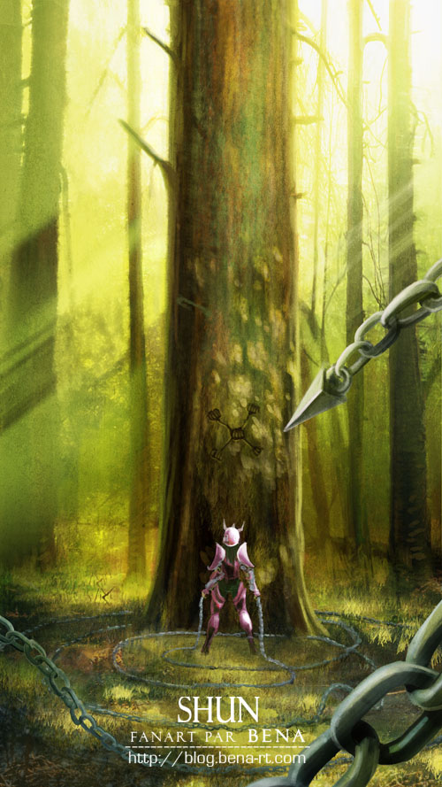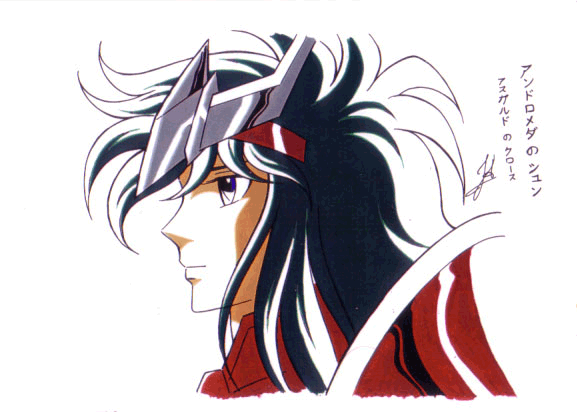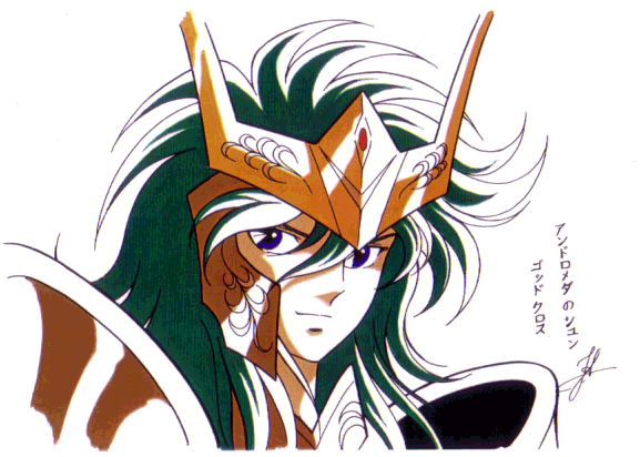 Shun está dispuesto a dejar una oportunidad de arrepentirse a Aphrodite, intentará comprender a Mime a pesar de los golpes que este le inflige, perdona la vida a Io Scylla a quien rechaza rematar (aunque éste finalmente se sacrifica), prefiriendo concentrarse en la destrucción del pilar, y trata de disuadir a cualquier precio a Sorrento para terminar su lucha. A pesar de los consejos de Io, que busca en sus últimos instantes de vida explicar a Shun que asume un gran riesgo haciendo prueba de demasiada compasión hacia sus opositores. Shun no lucha en plena capacidad al enfrentarse a Lune, en busca del camino de la discusión, que lo lleva a su derrota. Posteriormente, Kanon, que salvó a Shun y Seiya de las garras del juez Radamanthys, les reprocha no poner fin de inmediato a sus enemigos, haciéndoles entender que con esa actitud ponen en peligro las vidas de aquellos que se crucen con esos enemigos más tarde. Fanart de Marco Albiero (Italia) El anime ha mostrado una visión alterada del carácter del caballero de Andrómeda, Shun aparece con cabellos verdes, armadura rosa, con voz femenina (sí, en algunos doblajes de los primeros episodios de la teleserie emitida en Francia le pusieron voz de chica) y carácter particularmente sensible. Todas estas características han hecho de Shun un no-caballero, un llorica salvado siempre por su hermano Ikki, caballero del Fénix, que aparece siempre en el momento oportuno. Con todas estas premisas, muchos fans aprecian poco a Shun, pero si miramos más de cerca las numerosas características del Shun del anime no se dan en el Shun del kurumanga, la obra original. De entrada en el cabello de Shun es moreno y, sobretodo, es un chico (es un grave error que los dobladores de la teleserie creyeran que era una chica). A partir de ahí podemos ver a Shun desde otro ángulo.