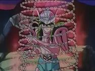 de accesorio de Cloth según el Cosmo Special Shun envía su cadena a la ubicación del oponente en el momento en que realiza el ataque, lanza al rival su cadena del extremo triangular que lleva en su brazo derecho para que esta localice la amenaza de forma automática, no importando la distancia. Si su enemigo está muy lejos lo hace bajo tierra o a través de un portal dimensional que se abre por encima de su cabeza. La punta de la cadena parte con movimientos sinuosos o en zig-zags similares a las ondas de sonido de un trueno, como un rayo en forma de ola que desprende relámpagos y genera un poderoso ataque perforante, simula el movimiento y la forma visual de un relámpago, y puede encontrar directamente a su objetivo marcado, dondequiera que esté, aun cuando éste se encuentre fuera de la vista a años luz de distancia o incluso en otras dimensiones, lo que le asegura que nunca falle su objetivo. La cadena aparecerá sobre la cabeza del oponente zigzagueando hacia el suelo hasta golpearlo, este ataque puede golpear a cualquier distancia. La cadena establece su objetivo y luego va hacia este zigzagueando hacia arriba y hacia abajo. El oponente recibe el golpe y el impacto lo hace rebotar en el suelo. Se trata del único y verdadero movimiento ofensivo de la cadena, siendo una evolución del ataque básico mediante latigazos, pero esta vez las cadenas avanzan a una velocidad mucho mayor y formando triángulos. Naturaleza: Física