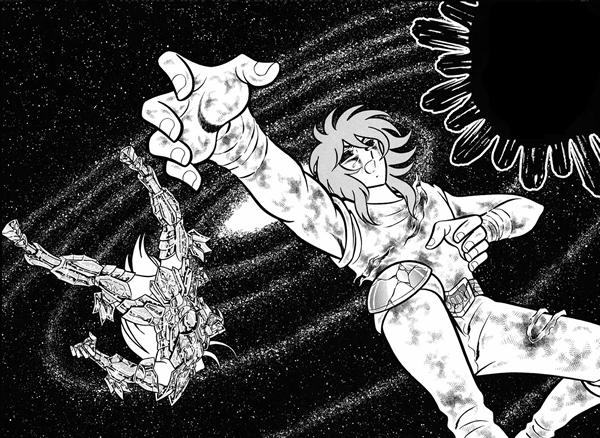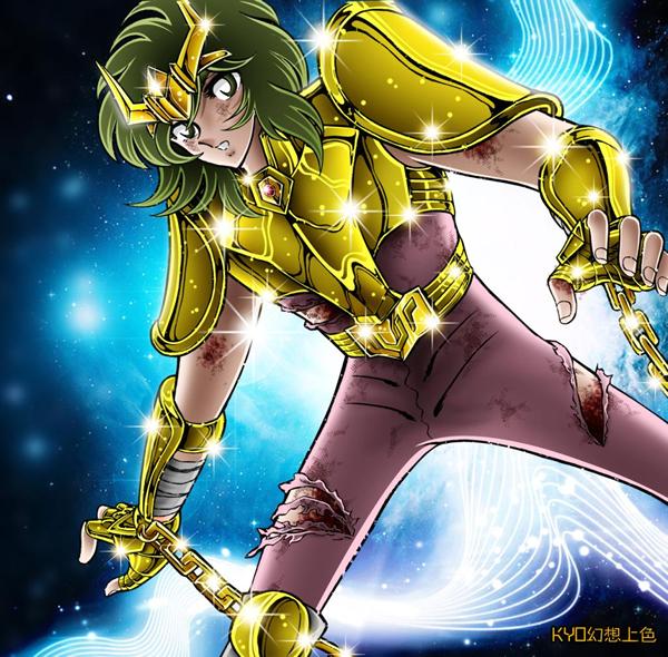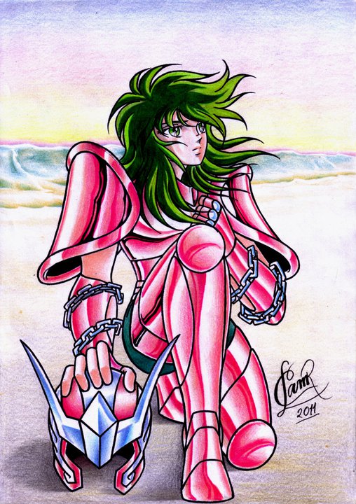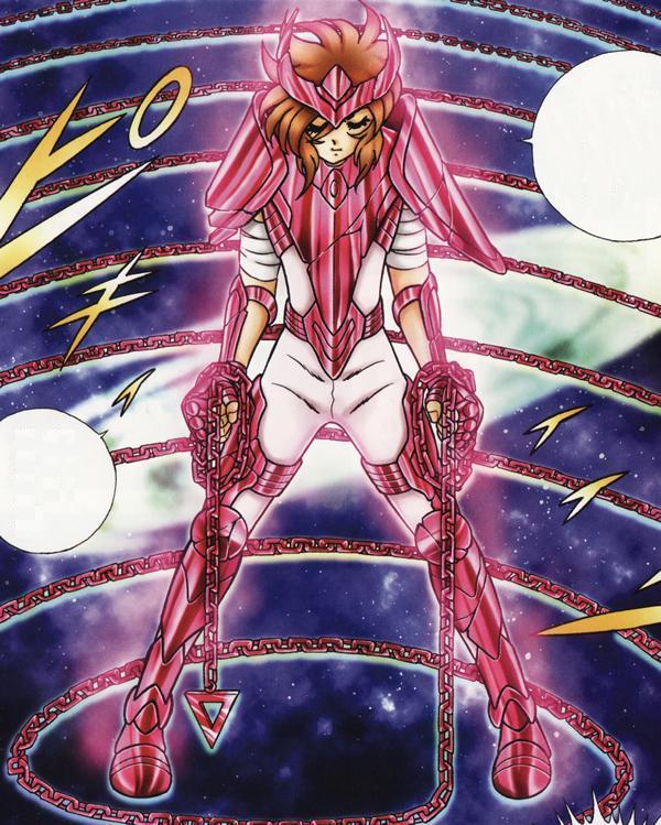Fanart de Carlos Alberto Lam Reyes (Perú) La armadura de Andrómeda, a parte de sus cadenas, dispone de capacidad lo suficientemente grande como para poder expresarse y transmitir ideas, por contra, otras protecciones, menos flexibles o menos equipadas, no parecen poder interactuar eficazmente con su titular u otro agente exterior, por lo que parece que todas las armaduras no tienen las mismas capacidades de reaccionar de una manera tan autónoma más allá de los límites humanos de su portador. En cambio, la armadura de Andrómeda es un ejemplo explícito de la autonomía de las armaduras y una manifestación de su propia existencia, así como una esencia personal, más o menos pronunciada. La armadura de Andrómeda, a parte de sus cadenas, dispone de capacidad lo suficientemente grande como para poder expresarse y transmitir ideas, por contra, otras protecciones, menos flexibles o menos equipadas, no parecen poder interactuar eficazmente con su titular u otro agente exterior, por lo que parece que todas las armaduras no tienen las mismas capacidades de reaccionar de una manera tan autónoma más allá de los límites humanos de su portador. En cambio, la armadura de Andrómeda es un ejemplo explícito de la autonomía de las armaduras y una manifestación de su propia existencia, así como una esencia personal, más o menos pronunciada. Su capacidad de localizar a su objetivo a años luz tal vez está relacionada con la astronomía. Andrómeda está más allá de los límites de nuestra galaxia, pero esta y la Vía Láctea forman parte de un mismo grupo local, Andrómeda pertenece a la familia de las galaxias espirales, es una gigante que mide 110.000 años luz de diámetro, contiene alrededor de 300.000 millones de estrellas y es 400.000 millones de veces más pesada que nuestro Sol. La constelación es relativamente importante, aunque está bastante alejada. Es evidente que algunas armaduras son capaces de tomar decisiones por si mismas, y desde cierto punto de vista "comunicar" con sus portadores, abandonándolos o protegiéndolos. La historia de "Axia" es de hecho una extensión de ese instinto protector, una manera de proteger a Shun contra una amenaza directa, Ikki. Presumiblemente, la armadura de Hydra también debe proteger a su usuario, pero se hace difícil pensar que sus garras vayan a doblarse para escribir "Axia". Hay otros ejemplos, como la armadura de la Copa, que según el Taizen tiene el poder de curar a los Saints, y la de Buril, que dispone de los instrumentos utilizados por Mu para reparar armaduras, o la armadura de Libra, que incluye armas ... así que queda claro que algunas armaduras parecen tener funciones específicas. Como se ha demostrado en numerosas