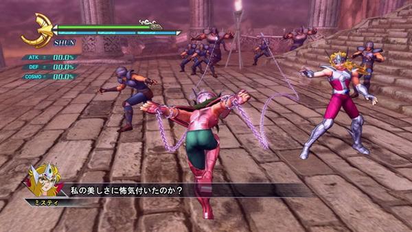 Grand Chain. グランド チェーン (Gurando Cheen) “La Majestuosa Cadena”. Técnica exclusiva de Shun en el juego de Playstation 2. Shun no Tamashii. 瞬の魂 “El Alma de Shun”. Pudimos ver su manifestación cuando estaba dentro de Hades e intentaba impedir que Hades ataque a Ikki. Shun nació el 9 de septiembre, que es también la fecha de nacimiento asignada a Hades, lo que lo convierte en alguien del signo de Virgo, signo bien elegido para ser asociado con Andrómeda. Shun parece ser uno de los Bronze Saints más sociables, su apariencia y comportamiento lo hacen más asequible por ejemplo que Shiryu e Ikki. En la novela Gigantomachia, Shun muestra cierto interés por el teatro clásico griego, y acude a una representación de Orestes en compañía de Nicol, Seiya declinó la invitación, juzgando aburrido al teatro. Shun fue entrenado en la ficticia Isla de Andrómeda, que se interpreta está situada en el Océano Índico, cerca de las costas de Somalia y Etiopía, actualmente Eritrea (lugar del mito de Andrómeda y Perseo), casi a la altura del Ecuador. En la mitología Andrómeda era una princesa originaria de Etiopía, por lo que podemos imaginar el porqué de su situación geográfica. Por supuesto, Kurumada no podía decir que su isla estaba en "las costas de Etiopía" ya que este país no tiene litoral, y tomó a Somalia como referencia para indicar dónde encontrar ese lugar. Algunos fans llegan a decir que aun el Andromeda Cloth no se había vestido nunca. Pero en el cómic de Kurumada Tatsumi menciona que ha habido Saints que han vuelto de la isla de Andrómeda aunque no eran los mismos de antes. Es algo que tampoco se menciona nunca, que el Andromeda Cloth no se había usado pero hay fans que lo creen así. Nunca se menciona claramente que nunca nadie ha vestido el Phoenix Cloth o el Andromeda Cloth. Volumen 20: Lo de los 88 completos en el siglo XX pues ese panel del manga comprueba que así fue en esa era. De hecho faltaría que Kurumada aclare si son 88 u 89 por la presencia de Ophiuchus Odysseus xD o por la presencia de los Bronze Saints del futuro siglo XX. La escena final de la batalla entre Aphrodite y Shun en el templo de Piscis donde el Bronze Saint se sumerge en la muerte por la rosa blanca clavada en su corazón puede ser una inspiración cristiana. Cabe señalar que Shun es del signo zodiacal de Virgo, que no se corresponde con la virgen María de los cristianos, sino con Perséfone, la esposa de Hades, una de las diosas virginales (junto a Atenea y Artemis), figura relacionada con el sexto signo del zodíaco, Virgo o el signo de la Doncella o Virgen, pero sutilmente se juega con la ambigüedad ya que la forma de la armadura de oro de Virgo en su forma Object recuerda mucho a la virgen María orando. Igualmente, en la saga de Poseidón, cuando Shun llega al pilar oceánico protegido por el Marina General Io de Scyla aparece una ilusión en la forma de una doncella que reza a la natividad del señor. El término “virgo” en su significado original no tiene que ver con la virginidad sexual, significa sencillamente una mujer que no se casó, o sea una mujer que no pertenece a nadie y cuya identidad le pertenece. Nadie es dueña de ella. Nadie la complementa. En la mitología abundan las diosas vírgenes y muchas de ellas, paradójicamente vírgenes y fecundadas, no por un mortal sino por el espíritu o algo luminoso o incorpóreo que proviene de su interior o de lo alto. Se convierten en vasos para que nazca un niño divino. En la Saga de Poseidón fue el que más Generales Marina derrotó. Derrotando a Io de Escila y a Sorrento de Sirena. Como fue señalado por Ikki de Fénix en el capítulo de Hades, la personalidad de Shun es muy fiel a lo que representa su constelación. Nunca dudaría en hacer un sacrificio, él prefiere hacerse daño a sí mismo antes que dejar que otros sean lastimados. Un tema recurrente en el carácter de Shun es el sacrificio, una alusión directa a la leyenda de Andrómeda. La tendencia comienza en la parte donde los héroes se oponen a los Black Saints, Shun llega a poner su vida en peligro para salvar a Seiya cuando él mismo es atacado, y luego volvió a poner su vida en juego empujando su Cosmos al límite con el fin de calentar a Hyoga y liberarlo del Freezing Coffin de Camus. Por último, cuando tomó su cuerpo Hades, Shun logra que Ikki pueda llegar hasta él para matarlo, aunque este no pueda hacerlo en el último momento. La imagen y el poder combativo de Shun en el manga han sido fuertemente distorsionados por la animación. Este detalle se puede ver claramente en las películas y las escenas exclusivas de la teleserie. Ikki, hermano mayor de Shun, aparece siempre justo a tiempo para salvarle la vida cuando está a punto de ser derrotado. Las películas y adiciones de la teleserie animada hicieron mucho daño a la imagen de Shun repitiendo sin cesar el cliché de Ikki que viene a su rescate. Esto ocurre contra el Ennetsu Saint, Dante, la ilusión de Saga, Mime, Bud, Orpheus (movie 1), Ullr (movie 2), Aphrodite (movie 3), Eligor (movie 4) y Theseus (movie 5). En comparación, en el manga Shun sólo es salvado por Ikki durante su lucha en la Casa de Géminis, mientras que los combates contra Shaka y Kasa son un poco especiales porque Ikki salva a varios a la vez. La Gold Cloth de Virgo: como Shun nació bajo la constelación astrológica de Virgo, tiene el privilegio de ponerse la Cloth de oro de Virgo en momentos de grave crisis. Esto se hizo evidente cuando él y sus compañeros (que también usaron cloths de oro cada uno) lucharon contra el dios de la muerte, Thanatos. Shun, como el resto de los Santos de Bronce, no tuvo tiempo de usar su cloth de oro o lanzar cualquier ataque mientras la vistió, ya que Thanatos atacó a todos los santos de bronce inmediatamente después de recibir los Gold Cloths. Thanatos, con un sólo ataque, fue capaz de romper los 5 cloths de oro, un hecho sin precedentes. Shun es humilde