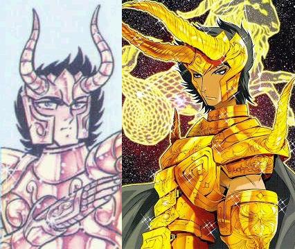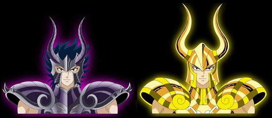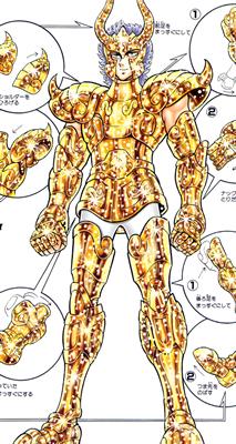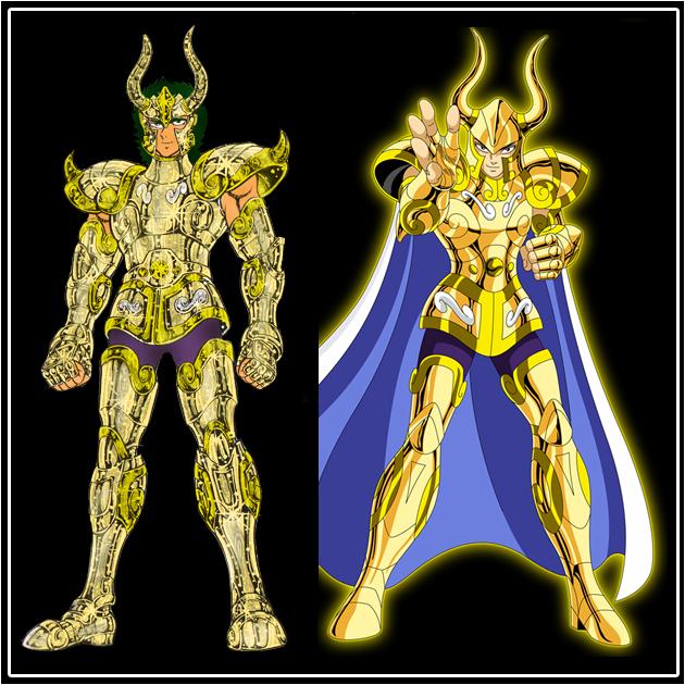 el diseño de sus corazas se asemeja más al Gold Cloth de Shura de Capricornio.