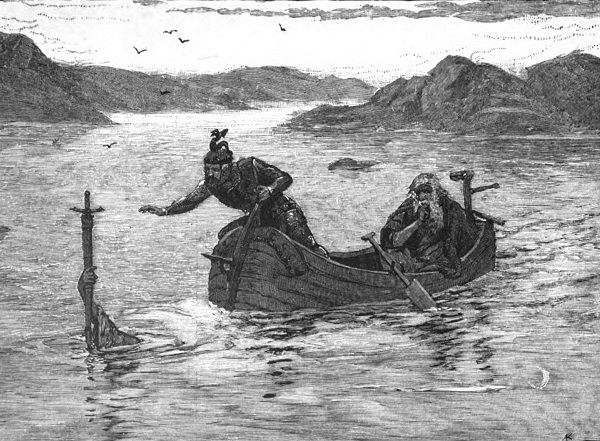 un río donde adopta la apariencia de un macho cabrío con cola de pez;