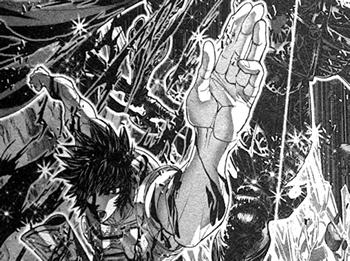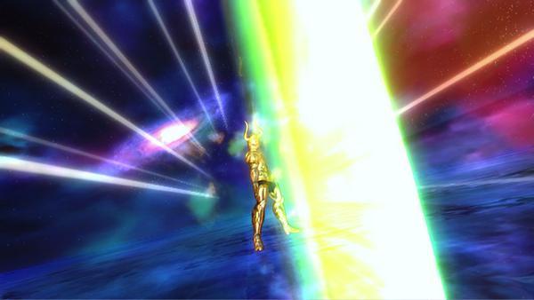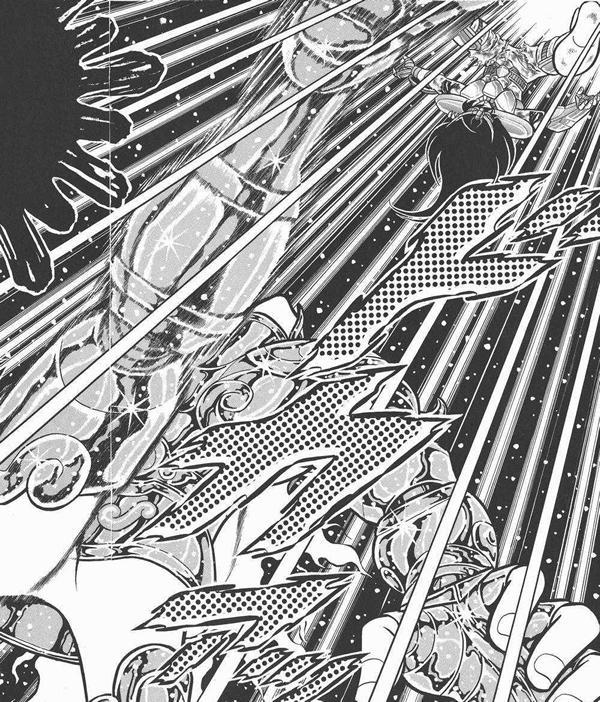después de añadirle su cosmos finalmente lo lanza contra su adversario