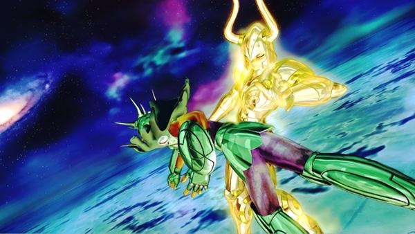 Cid de Capricornio. Los tres Saints saltan al aire colocándose en la posición