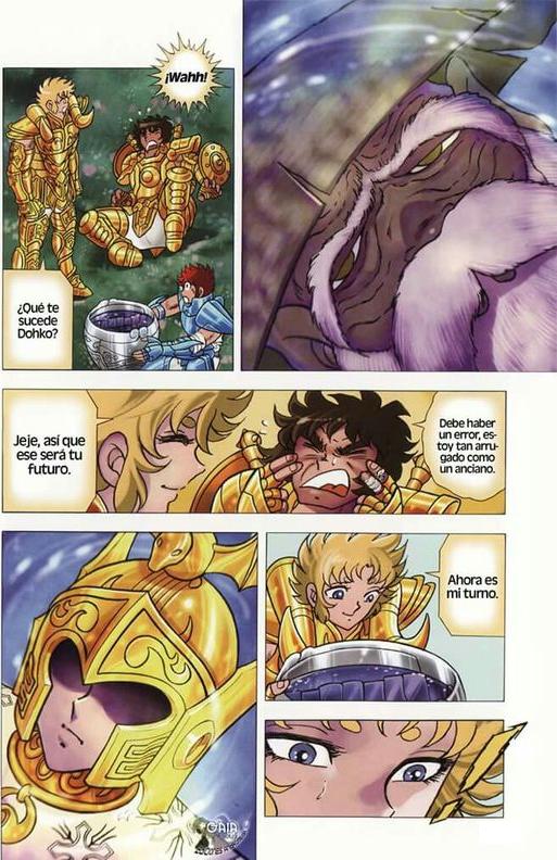 Tenma, su discípulo, y en tándem Doko / Shion. Los Santos de Oro también