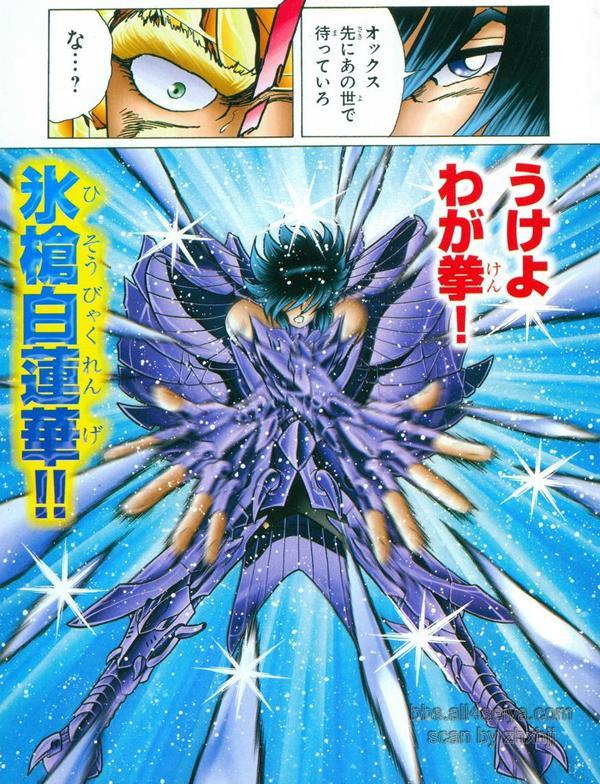 con las del Crateris Saint. Cuando ataca con el Hisō byaku-renge, su técnica
