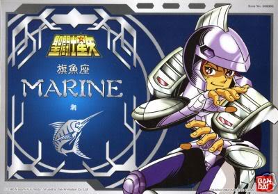 En el original japonés, su armadura se llama "pez-estandarte", o lo que es más correcto, "pez espada", refiriéndose posiblemente a la constelación del mismo nombre. El Marine Cloth, que es capaz de producir ondas de sonido. Usa su armadura para desplazarse por el aire como si fuera un pequeño avión, y tiene unos dispositivos en el casco que le permiten generar unas ondas que anulan los poderes psíquicos.