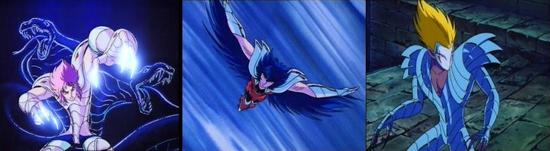 Killer Fanged Cobra キラー・ファングド・コブラ "Los mordiscos asesinos de la Cobra", "Los colmillos asesinos de la cobra" o "Cobra dentada asesina" - Astaroth ejecuta una serie de golpes rápidos que desgarran a su adversario con una multitud de puñetazos que proyectan mordeduras afiladas de serpiente. Lanza golpes y zarpazos rápidos con sus uñas de plata que proyectan mordeduras de serpiente, es muy hábil y agresivo en combates cuerpo a cuerpo, orgulloso y amante de la lucha. Con este ataque logra atravesar y pulverizar el escudo del Dragón y el vientre de Shiryu en un instante. Al traducir del inglés, 'cobra' significa específicamente la serpiente naja (‘Naja tripudians’), la cobra de cabello. Las especies de naja son serpientes muy venenosas, de África y Asia, que, cuando son excitadas, expanden la piel del cuello en forma de un largo capó, por el movimiento de las costillas delanteras. Todas tienen la habilidad característica de levantar del suelo la parte delantera de su cuerpo y aplanar sus cuellos para parecer más grandes ante un potencial depredador.