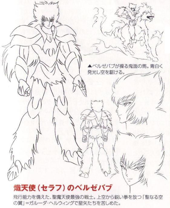 Beelzebub de Serafin 熾天使 (セラフ) (pron. jp. serafu no beruzebabu), (Shi Tenshi) Shi = Disparar Fuego, Angel de Fuego. Apodado "el dios guerrero de los cielos", es uno de los ángeles caídos o destructores (Angel de la Muerte) que sirven a Lucifer en la cuarta película de Saint Seiya. Serafín de la Violencia. Se presenta como el líder de este grupo de guerreros, sólo lograran derrotarlo con la armadura dorada de Sagitario. Beelzebub se presenta como "El angel Ardiente". ETIMOLOGÍA DEL NOMBRE : ベルゼバブ - Beelzebub : “Belcebú” También se admiten las siguientes grafías Belzebú y Belcebú. Es uno de los siete príncipes del infieno su nombre deriva de Ba‘al Zebûb, Ba‘al Zəbûb o Ba‘al Zəvûv romanizaciones de los signos hebreos בעל זבוב que a su vez en griego se representa βεελζεβούβ de significado literal “El Señor de las Moscas”. Analizando más detalladamente la palabra viene de Ba‘al en hebreo para “Señor o Patrono” y Zebûb para definir a la “Moscas” también en el mismo idioma. El nombre Beelzebub