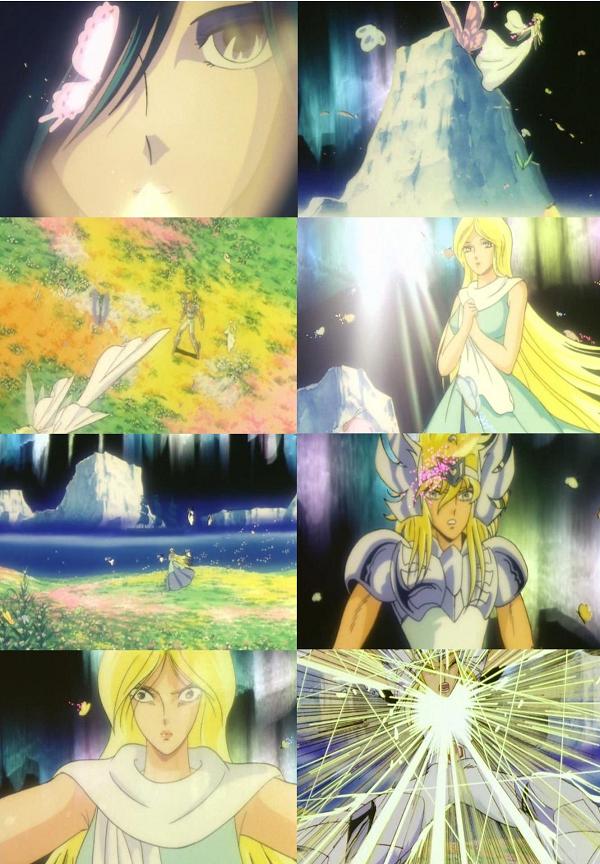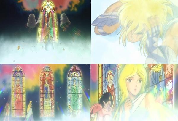 En el apogeo del Demon Fantasia suena el Ángelus. El Ángelus es una oración que celebra el misterio de la Encarnación (acto por el cual la segunda persona de la Trinidad se hizo hombre en la persona de Jesucristo), que toma su nombre de la palabra por la que comienza. Este nombre también se da al sonido de campana que resuena por la mañana al mediodía y por la noche para indicar a los fieles que es la hora de la oración. Moa anuncio a Hyoga que se recita el Ángelus. Esta oración es usada por la Iglesia Católica y conmemora la anunciación hecha a la Virgen María de su embarazo, la atención se centra por lo tanto en Jesús y su madre. Vemos aquí un paralelismo maternal entre Hyoga y Natassia, y además la constelación de Cygnus es también llamada la Cruz del Norte debido a su forma (y Hyoga tiene un rosario de la Cruz del Norte), lo que centra en Hyoga un simbolismo que hace pensar en Cristo que murió crucificado.