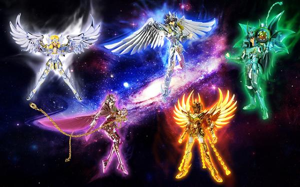 Debido a una preocupación estética y con fines comerciales (la venta de figuras de acción más atractivas) las armaduras iniciales de los 10 Bronze Saints que compiten en el Torneo galáctico (Galaxian Wars) en la versión animada se rediseñaron en comparación con las versiones del manga, ofreciendo a Seiya y sus compañeros protecciones similares a las de los Silver Saints.