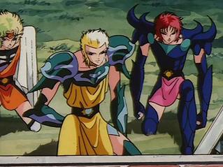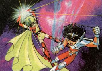(2) Belenger lleva una armadura blanca con tonos rojos (3) Aparece una imagen de Shiryu y Jao peleando. Jao luce una armadura naranja y pelo rojo (bastante raro). El detalle es que ellos jamás pelearon, decidieron cambiar a Jao por Deathmask. Las influencias de la película de Abel en el manga Esta película es una avalancha de buenas ideas. No sabemos el grado exacto de participación de Masami Kurumada en esta película; de todos modos, es más que evidente que varias ideas serán reutilizados en el manga. - La técnica de Mino Cosmic Marionation se inspira claramente en la técnica de Belenger Golden Death Hair. Ambas tienen algunas similitudes, ya que privan a sus víctimas de la libertad de movimientos y en ambos casos, Hyoga será la víctima designada. - Saga y Kanon se sacrifican de la misma forma. Saga muere llevándose con él a Jao y Canon utiliza la misma postura para matar a Rhadamanthys. - Los Gold Saints son resucitados. A primera vista, Saga, Shura y Camus se mantienen leales a Atenea. El manga deja cierta ambigüedad en lo que respecta a Deathmask y Afrodita (no hay ninguna palabra demostrando su lealtad o no). Sin embargo, aparecen detrás de Shion, lo que indica que estaban con él. En la película, se aprovechan del cosmos de Abel para vengarse de Shun y Shiryu. - Los Bronze Saints son abandonados por Atenea, quien los deja de lado en la película, sucederá lo mismo en la batalla contra Hades. Atenea no quería de hecho que sus protectores más cercanos perecieran contra unos enemigos demasiado fuertes. Seiya pagará el precio de este trastorno. - El nuevo aspecto visual del Yomotsu Hirasaka. La antesala de la otra vida vuelve a aparecer en la película, con una visión diferente a la serie. Este mismo visual se incluirá en las OVA del Junikyû. - La última defensa. El rol de Atlas es a menudo llamado el último baluarte. Jäger por ejemplo, apenas ocupaba ese papel en la primera película. Su función es bloquear uno por uno a todos los héroes, y a menudo con una facilidad desconcertante. Beelzebub asumirá ese atributo en la cuarta película, luego Siegfried en la saga de Asgard y Thanatos el dios de la muerte en el manga. - La purificación de la Tierra. El principal argumento de Abel finalmente se hará eco en la quinta película, porque el mensaje es muy similar. Incluso se puede escuchar de los labios de Odysseus (Ulises). Esta ambición también es la misma defendida por Kryshna y Poseidón. Es un motivo muy diferente de las simples ambiciones de dominar el mundo. - Los dioses son intocables. El dios Abel devuelve todos los golpes de sus oponentes. Esta información es introducida en el capítulo 61 del manga, publicado el 18 de octubre de 1988, sin embargo, la película aplica esta regla cuando fue lanzada (julio 88). No hay duda de que Masami Kurumada, probablemente, hubiera establecido la idea en la misma película. - La muerte de Atenea. El hilo conductor de la película es casi calcado en la saga de Hades, donde se apuñala a sí misma. Seiya y los demás héroes son perturbados y entristecidos por esta terrible conclusión: Atenea ha muerto. No del todo finalmente.