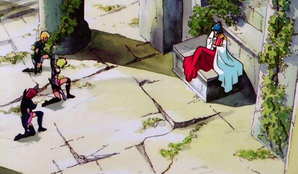 Psicológicamente, Abel escapa radicalmente de los clichés de los enemigos encontrados hasta ese momento por los Saints pues es el dios que más declara sus emociones. Feliz de reencontrarse con su hermana, es herido y se muestra decepcionado por oponerse a ella tan rápidamente. Además, mucha poesía etérea se propaga en el Templo de la Corona. La escena en la que Atenea aparece caminando con su hermano en la introducción de la película es de una inocencia y delicadeza exquisitas. La película va más allá de lo que se presentó anteriormente.