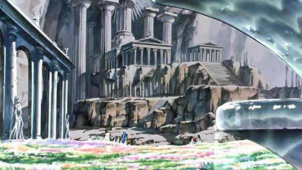 Corona Shinden. コロナ神殿 (コロナしんでん) “Templo de la Corona” Estas colinas están en una zona prohibida en el interior del Santuario de Atenea desde hace milenios. Están salpicadas de ruinas de muchos templos en el centro de las cuales se encuentra el Templo de la Corona Solar: Corona Temple [太陽神殿: Taiyou Shinden: Sun Temple] (pron. jp. corona shinden, literalmente: sol + templo), la morada del Sol, donde reside el dios Abel.