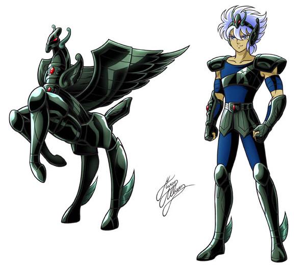 PARTICULARIDADES DE LA ARMADURA : Ankoku Pegasus no Cloth. 暗黒ペガサスのクロス → (あんこくペガサスのクロス) “La Armadura de Pegaso Negro”. Su armadura es una copia del Bronze Cloth de Pegaso en color negro.