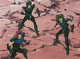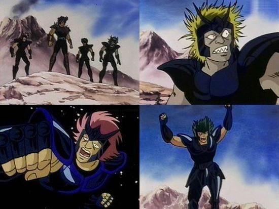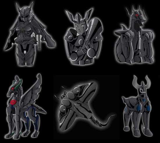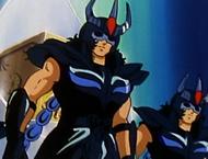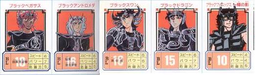 Estos tres black saints mostrados en el anime no fueron caracterizados en el Dragon Booklet ni en otro artbook. Tampoco conseguimos identificarlos con algún Caballero Negro del manga.