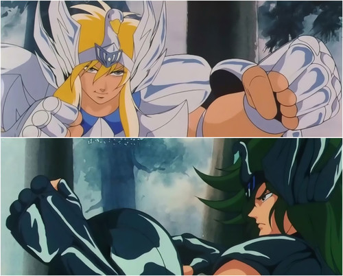 FOUR Estos cuatro fueron considerados como los más poderosos entre los Black Saints y fueron conocidos colectivamente como los Black Four (暗黒四天王(ブラックフォー) Burakku Fō), dobles de los Bronze Saints protagonistas. Sus Cloths y técnicas son contrapartes a los de Pegasus Seiya, Dragon Shiryū, Andromeda Shun y Cygnus Hyōga. Aunque, sólo hay una contraparte de cada Cloth, en el manga el Black Dragon Saint tiene un hermano ciego que le ayuda a luchar. Además, también hay varios Black Phoenix Saints, que se refieren a sí mismos como las sombras de Ikki, aunque en el anime uno de ellos aparece como el más fuerte. Los Black Four son derrotados por sus equivalentes, y en el manga son más tarde asesinados por los Silver Saints, quienes creyeron haber eliminado a los Bronze Saints, pero los confundieron debido a una ilusión creada por Aries Mu. Aunque teóricamente existe un Black Saint contraparte de cada una de las 88 constelaciones, Kurumada sólo puso 4 en escena en su manga, los equivalentes oscuros de los protagonistas: Black Pegasus (ブラックペガサス Burakku Pegasasu), Black Andromeda (ブラックアンドロメダ Burakku Andoromeda), Black Dragon (ブラックドラゴン Burakku Doragon) y Black Swan (ブラックスワン Burakku Suwan). Se les consideraba como los más poderosos entre los Black Saints y fueron conocidos colectivamente como The Black Four (暗黒四天王(ブラックフォー) Burakku Fō). Sus Cloths y técnicas son contrapartes a los de Seiya de Pegaso, Shiryu de Dragón, Shun de Andrómeda y Hyoga de Cisne. Black