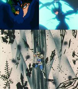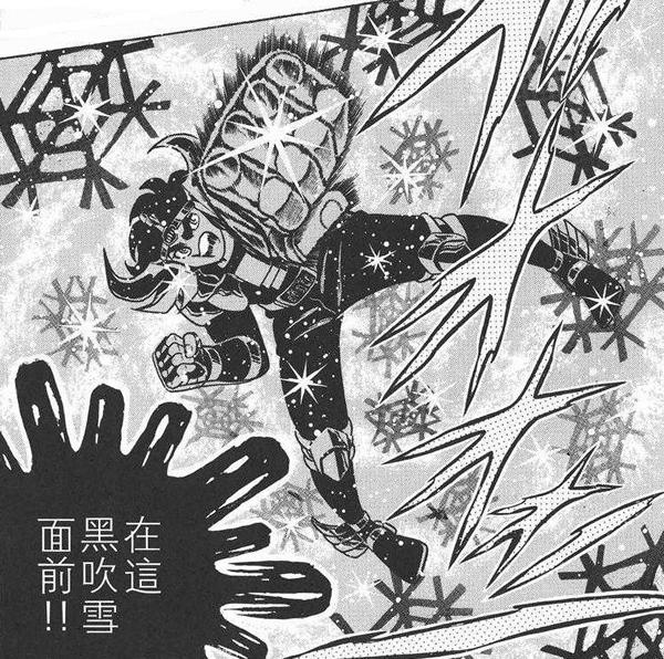 - Black Blizzard (Manga) 黒吹雪 o Ankoku Blizzard (Anime) (暗黒 ブリザード - (あんこくブリザード) (pron. jp. Burakku buruzādo, Ankoku Burizādo) "Blizzard Negro", "Ventisca Negra", “La Ventisca de la Oscuridad” o "Ventisca de las tinieblas") técnica de hielo (kôri no tôgi) Cisne Negro utiliza el polvo y la suciedad del aire para crear hielo negro. Se las arregla para atrapar a Shun, pero su técnica se revela insuficiente para hacer frente al Diamond Dust de Hyoga. En el manga esta técnica se llama “Black Blizzard” mientras que en el anime se renombra “Ankoku Blizzard”.