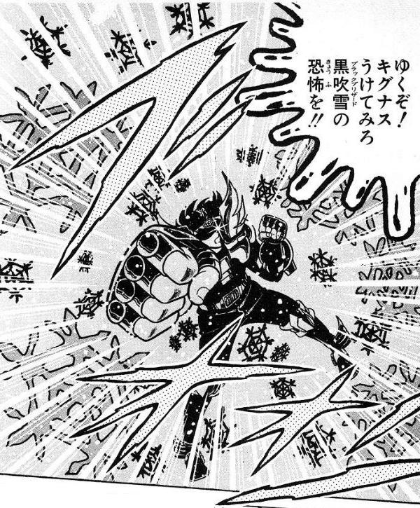 no indicado TÉCNICAS DE COMBATE : - Black Fang Nebula (Manga) o Ankoku Nebula Chain (Anime) (暗黒流牙星雲 - ブラックファングネビュラ, ※アニメでは暗黒ネビュラチェーン)), (Burakku Fangu Nebyura, Ankoku Nebyura Cheen) "Mordiscos de la nebulosa negra”, “La Cadena Oscura de la Nebulosa”, "Cadena nebular de las tinieblas" o "Cadena de Andrómeda Negra", (暗黒ネビュラチェーン - (あんこくネビュラチェーン), Ankoku Nebyura Cheen, "Nebula/Nebulosa del colmillos negros"). Este ataque es nombrado también "Mordedura Negra de la Cadena Nebular" (Black Fang Nebula) en el manga, mientras que en el anime es renombrado Ankoku Nebyura Cheen, "Nebula/Nebulosa del colmillos negros".