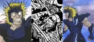 El parecido físico entre los Bronze Saints protagonistas y sus homónimos sólo se da en el anime, no así en el manga, en el que hay diferencias claras, por ejemplo Black Pegasus no tiene el mismo corte y color de pelo que Seiya, además, cuando vemos las fichas técnicas de cada uno, existen diferencias de origen, peso, altura, grupo sanguíneo y edad. El concepto de calco es un delirio fácil del anime a fin de mostrar la antítesis de los héroes, que combaten contra sus dobles demoníacos. En el manga la visión es completamente diferente. Los tipos no se parecen a los caballeros de bronce.