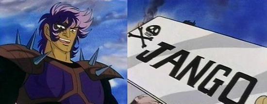 ETIMOLOGÍA DEL NOMBRE : ジャンゴ pron. jp. [Jyango] Django: Variante Jango. Ambas correctas, misma pronunciación, variación en la escritura. Nombre basado el film Django (1966), película hispano-italiana del género Spaghetti Western que por aquella época se ganó la reputación de ser una de las más violentas que nunca se habían hecho. El actor de este film que interpreta al protagonista y personaje icónico de Django es el italiano Franco Nero, que al parecer es uno de los actores favoritos de Kurumada, ya que de otra película del género thriller protagonizada por este mismo actor y titulada The Salamander (1981) Kurumada obtuvo el nombre de la técnica de Lymnades Caça : Salamander Shock. ESTADÍSTICAS DEL TAIZEN : Puño :
