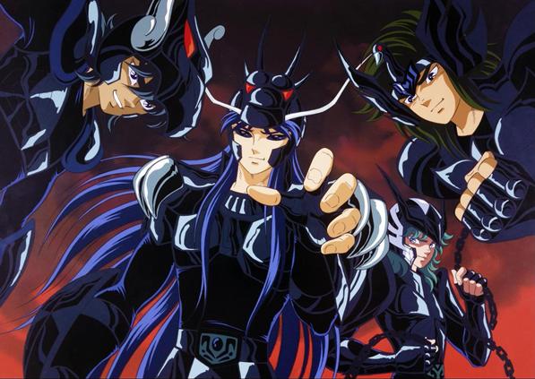 / ANKOKU A los Caballeros negros / renegados de la Isla Death Queen en el Manga se los llamó Black Saint (Santos Negros) y en la versión Animada Ankoku Saint (Santos de la Oscuridad) para facilitar la lectura y comprensión. A la gran mayoría de la población japonesa el inglés les resulta un idioma muy difícil y complicado, y aunque Black es una palabra muy común, no todo mundo la conoce, especialmente los más pequeños. De hecho, muchos japoneses ni siquiera conocen bien los números arábigos, tan comunes en occidente, y usan la representación en kanji de los números decimales, así que, eso ilustra bien porque ocurren cosas como estas al trasladar un cómic a animación. Para un japones, oir Ankoku, es como que nosotros en vez de Black oigamos Negro. Es asi de sencillo. Aun asi. No es un cambio total realmente, pues siempre se usa la escritura en kanji que Kurumada usaba en su manga, en los títulos o créditos, es decir 暗黒聖闘士, sólo es una adaptación. Las motivaciones para combatir de los Black Saints distan mucho de las motivaciones de los verdaderos Saints. Los Black Saints luchan para satisfacer sus ambiciones y su afán de poder, son hombres despiadados y sin honor que buscan obtener un beneficio personal y utilizan para ello poderes adquiridos mediante el entrenamiento de la misma naturaleza que el de los Saints. Ellos han abandonado el ideal de la caballería en interés de sus propias necesidades, al contrario de lo que hacen los verdaderos Saints. Son malvados hasta el fondo de su alma y sólo les preocupa la gloria. Los Black Saints tienen por costumbre seguir como líder al Black Saint más poderoso, en caso de que algún otro Black Saint quiera asumir el mando, debe enfrentarse y derrotar al líder de turno y de paso a todos sus compañeros. Adicionalmente, los Black Saints son prisioneros de la Isla de la Reina de la muerte, que está bajo la supervisión de un poderoso guardián enviado por el propio Santuario, de este modo ese lugar sirvió de confinamiento de traidores y malhechores dentro de la propia orden de los Saints. Como dato curioso, precisar que en la Edad Media, durante la Guerra de los Cien Años (1337-1453), en Francia, existió un grupo de caballeros negros independientes, que no luchaban ni a favor de los ingleses ni de los franceses, luchaban en beneficio propio, como los borgoñones. Quizás Kurumada se inspiró de este dato histórico. Los Black Saints aparecen como siervos del Bronze Saint Ikki de Fénix en su afán y búsqueda para matar a todos los Bronze Saints (específicamente aquellos hijos de Mitsumasa Kido). Aunque existe un Black Saint como contraparte para cada una de las 88 constelaciones, en el manga de Kurumada sólo 4 ocuparon un lugar destacado en la trama, precisamente los equivalentes oscuros de los protagonistas: BLACK