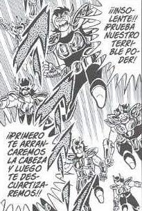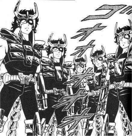 Youtube - Canal Saint Seiya Next Dimension Fan Group "Se dice que estos individuos utilizan el poder que les da ser caballeros para satisfacer su propia ambición, y que recorrerán el mundo eternamente dejando a su paso un rastro de muerte y de sangrienta desolación.” Curiosamente recibieron nombres diferentes / alternativos en el manga y en su adaptación al anime. MANGA