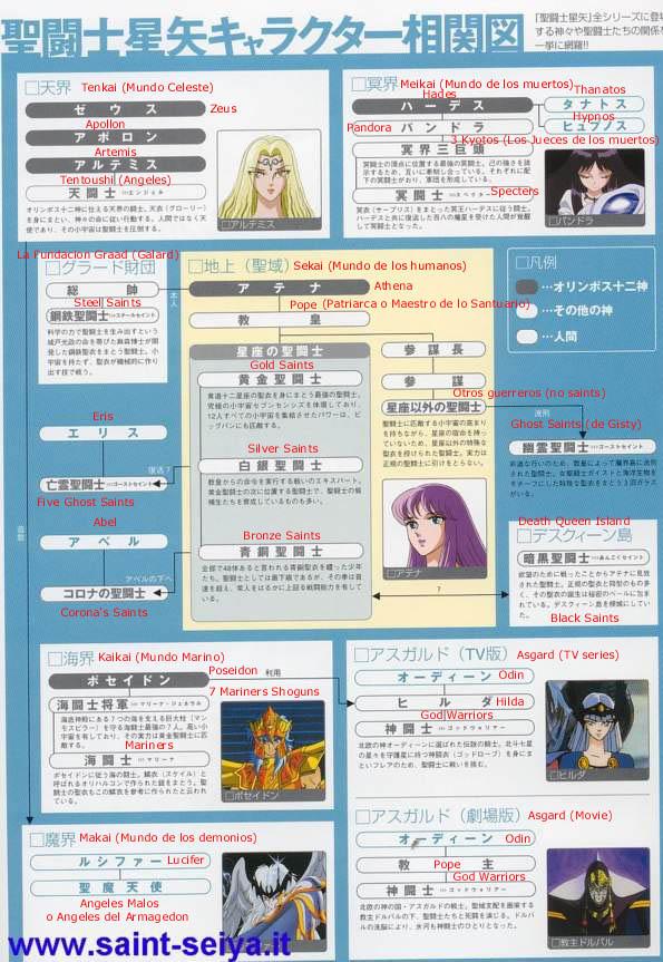 Según el artbook Jump Gold Selection - Compendio de los Caballeros del Anime, tenemos: -