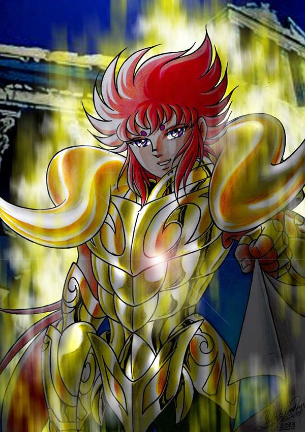 Fanart de Carlos Alberto Lam Reyes (Perú) Bueno, la armadura de Aries ahora está vacante, de la misma manera que Mu heredó esa armadura de su maestro Shion; aunque se agradecería que vistiera una armadura distinta puesto que seguramente Kiki no alcanzó el nivel de caballero dorado y no está a la altura de un puesto de tanto nivel. Despues de todo, los muvianos no sólo optan a la armadura de Aries, como se ha visto en el manga "The Lost Canvas" y la novela "Gigantomachia": Nicol y Harukei de Altar, Sage de Cancer y Yuzuriha de Grulla. Vistas las habilidades de Kiki con la reparación de armaduras y su lupa virtual para ver daños microscópicos, muchos fans ya han apostado por la armadura de Buril o Escultor, ambas relacionadas con dicha tarea. Pero, ¿este caballero sólo serviría para reparar armaduras?, ¿para qué lleva entonces una armadura si no va a estar combatiendo? puestos a imaginar, de la misma manera que puede reparar armaduras, podría tener un ataque que destruyera la armadura al enemigo ¿no?.