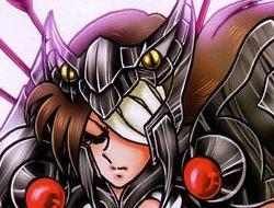 Fanart de Marco Albiero (Italia) La vestimenta de Lascoumone, tal como la de sus subordinadas, representa una serpiente, específicamente una Pítón, la serpiente enviada por Hera para matar a los hijos de Zeus fruto de la infidelidad del dios con Leto, y que fue muerta por Apolo. En algunas versiones, se dice que Pítón, serpiente nacida de las entrañas de la tierra, fue una gran víbora. Pítón también tiene vínculos con la mitología sumeria. Entre los babilonios, existía la gran diosa Tiamat, en forma de una enorme serpiente negra, conocida como la diosa dragón del caos y de la oscuridad, muerta por Marduk, el dios de la luz y la justicia. Por lo tanto, existe una clara inspiración mitológica de Kurumada en las guerreras de Artemis, que, sin duda, dará todavía mucho de que hablar. ¿Por qué sus armaduras son negras?. Simple!. LaScoumone es la capitana de un comando que representa a la Luna Nueva, donde, según los místicos, está despierto el poder oscuro de la humanidad y donde la conexión con el otro lado es mejor. Nada mejor que el color negro para unas asesinas de élite. Con todos estos datos podemos constatar que los satélites han sido, hasta el momento, la clase de guerreros que está más inspirada en las características de su diosa. Los Saints se basan en constelaciones, no específicamente en mitos relacionados con Athena, los mariners representan criaturas marinas de varias mitologías; los espectros ídem; los únicos que pueden superar a las satélites son los god Warriors, a pesar de que son rellenos del anime!. Los Angels llevan Glory (Glorias), referencia a la aureola luminosa (llamado gloria o prestigio) que envuelve y rodea a las imágenes sagradas del catolicismo (Cristo, María, los ángeles y los santos). Los Glory son las corazas de los Angel, hasta ahora el único que conocemos es el de Angel Tōma, el nombre de las corazas de LaScomoune y sus chicas satellites aun no ha sido revelado por Kurumada. Las soldados Satélites llevan armaduras que representan a perros de caza (las tiaras son prácticamente idénticas a la tiara de la armadura de Asterión de Perros de caza), ya que los perros, por ser dados a la caza, son parte del cortejo de Artemisa en la mitología. Incluso en un pasaje en el que Calisto las amonesta, las "orejas" de las tiaras para la cabeza se caen y bajan, como si fueran perritos obedientes. La Scoumoune en realidad lleva una armadura ofidia. Esto y el nombre de su ataque, Crimson Viper (Víbora carmesí) puede referirse tanto a los hábitos nocturnos de las víboras (en latín 'Vipera' y en inglés 'víper), la familia de serpientes cuyo aparato venenoso es considerado el más eficiente de todos los reptiles. Las víboras atacan a sus presas en emboscada, un comportamiento típico de los depredadores nocturnos. Las víboras del género Causus, subfamilia Causinae, del África subsahariana, se denominan popularmente "cobras de la noche." Selene, la Luna personificada, comenzó a ser retratada durante el Renacimiento en un carruaje tirado por un par de caballos, dragones o serpientes. Hécate, la Luna Negra (la Luna en las fases menguante y nueva), era representada con serpientes enroscadas alrededor de su cuello. Curiosidad: simbolismo de las orejas en forma de “conejo” Los soldados satélites evocan a conejos.... Kurumada ha vuelto a sorprendernos con la forma de los cascos de los soldados con orejas de conejo. Este es el tipo de pequeños detalles que hacen que uno se pregunte si Kurumada no sufre a veces una especie de delirio o auto parodia su propio trabajo, pero en este caso, hay una explicación mitológica. El tema de los conejos está ligado a una leyenda entorno al dios azteca Quetzalcóatl (el famoso dios serpiente emplumado...) Según esta leyenda, un día Quetzalcóatl se trasladó a la tierra en forma humana, y cuando estaba agotado y hambriento un conejo se arrojó al fuego para servirle como alimento. Esta leyenda nos recuerda mucho a la leyenda china que Shiryu explicó a Seiya en el episodio 60 (cuando Shun estaba dispuesto a sacrificarse en la casa de Libra para calentar la cosmo-energía de Hyoga) inspirada de una verdadera leyenda asociada con la vida de Buda. La leyenda azteca estaría cerca (pero eso no debe sorprendernos especialmente, a menudo en Saint Seiya hay mezclas de los diversos mitos de los pueblos del mundo). Aun así, para agradecer su sacrificio al conejo, Quetzalcóatl lo elevó a la luna, imprimió su imagen y lo hizo regresar a la Tierra, explicándole que ahora todos van a poder ver su foto en los cielos. Para los aztecas el conejo era aparentemente una figura lunar y estaba asociado con la caza (lo que encaja bien con la idea de Artemisa en la mitología griega). Kurumada nos vincula sutilmente la mitología griega y las leyendas aztecas, como él suele saber hacer (sincretismo de varias mitologías para servir a su historia). Es muy probable que Kurumada dibujara los mask (yelmos / diademas) de las Satélites blancas de la Guardia Real con tiara en forma de orejas de conejo para hacer referencia al Moon Rabbit / suki no usagi (月の兎 – conejo de la luna) o Jade Rabbit, del folclore japonés, un conejo que vive en la luna, debido al motivo lunar en el concepto de las Satellites. La leyenda o fábula folclórica clásica japonesa del conejo de la luna está basada en la pareidolia (fenómeno psicológico que consiste en que podamos percibir un rostro o una figura humana o animal en lugares insospechados: la forma de estar colocadas las ventanas/puertas en un edificio, la parte posterior de un despertador, una nube, en una tostada, una grifería, etc. nuestra tendencia a ver formas conocidas donde no existen, como ovejas en las nubes, la Virgen María en una mancha en la ventana, una cara en una montaña de Marte o un conejo en la silueta / relieve de la luna) que identifica las marcas de la superficie de la luna como la silueta de un conejo. Muchas referencias a esta conocida f