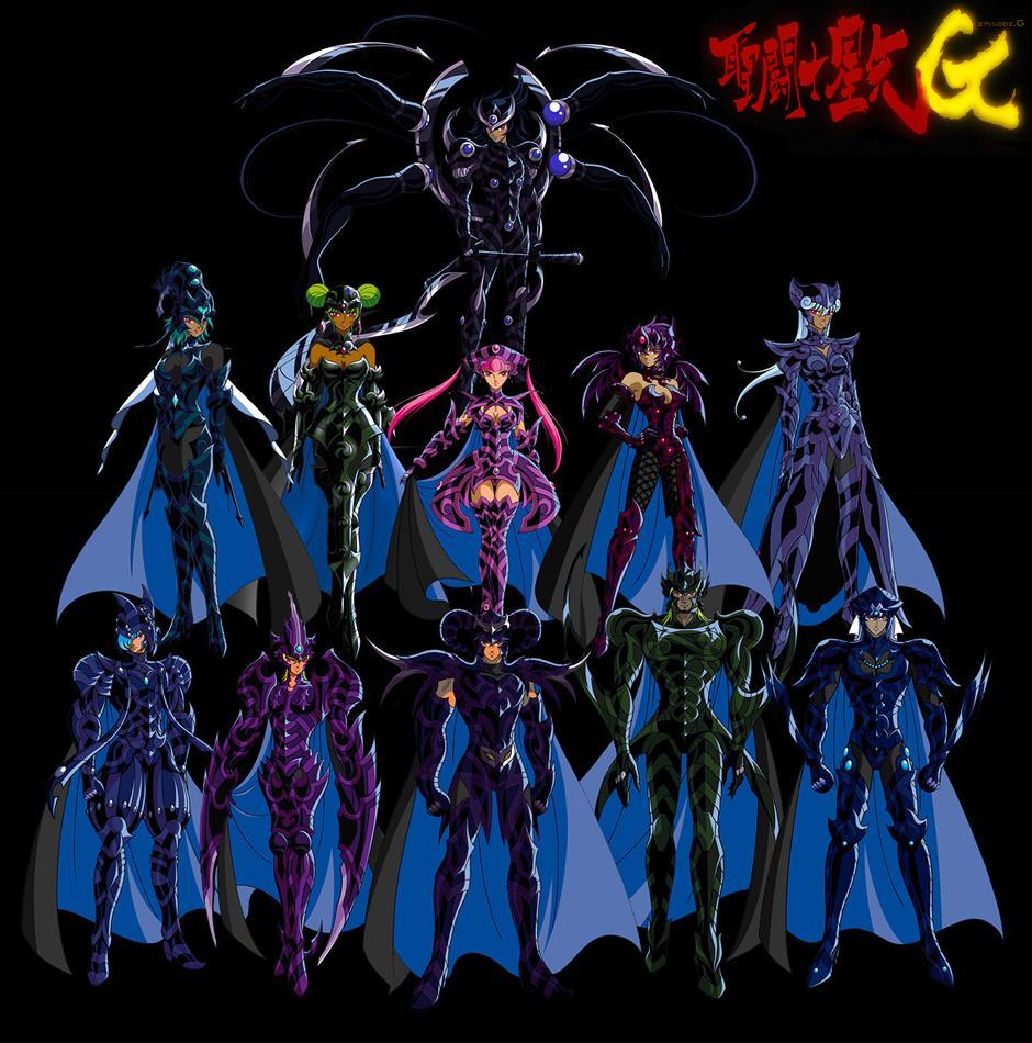 • Phaios Spathe (Filo Gris) (灰色の刃 - パイオスのスパテー Haiiro no Yaiba - Paiosu no Supatē) Es el quinto gigante, desafía a Shura de Capricornio después de la matanza de un grupo de soldados de Cronos, que están retrocediendo debido a los ataques fieros del Gold Saint. Su nombre proviene de las dos hojas enormes que tiene en sus brazos. A pesar de ser gigantesco y poderoso, no es rival para Shura, y Grey Blade es herido mortalmente por Excalibur. Sin embargo, él es asesinado por la técnica Aster Blade de Kreios, sacrificándose a sí mismo para que el Titán pueda golpear fácilmente al Santo de Capricornio. Técnicas de combate : - Eight Direction Claw (八陣爪 pron. jp. Hachijinsō) "Formación de combate de ocho garras”: Esta técnica divide uno de los filos del Gigante en ocho hojas menores que trabajan por su cuenta, creando así ocho ataques simultáneos, ganando más probabilidades de dar en el blanco. Sin embargo, como el Cosmo se divide también en ocho, los golpes son menos poderosos. Spathê despliega ocho láminas en un círculo alrededor de su puño para atacar a su oponente. Estas hojas son controladas por su Cosmos, lo que le permite proporcionar un movimiento independiente a cada una de ellas. • Anthrakma Zugylos (Rubí de Hierro) (紅玉の鉄 - アントラクマのジギーロス pron. jp. Kōgyoku no Tetsu - Antorakuma no Jigīrosu) Es el sexto gigante, aparece contra Aioria y Afrodita en la entrada de la dimensión de los titanes. Se asemeja a un gigante guerrero completamente cubierto de hierro y bañado en sangre, de ahí su nombre. Dispone de una maza rubí gigante con la que puede crear destellos cegadores de ondas rojas y destructivas de resonancia que pueden desintegrar casi todo lo que tocan. Este poder también está presente dentro de los puños del Gigante. Es en primer lugar desarmado por las Piranhan Roses de Afrodita, con la que destruye su maza, y luego asesinado por una combinación de las Royal Demon Roses y la Bloody Rose. Su existencia no es incompatible con las de los Gigantes presentes en Gigantomachia, cada grupo se designa como "un clan de gigantes". Los Gigantes de Saint Seiya G son generalmente más grandes que los de Gigantomachia. Teniendo en cuenta el Hipermito, serían los Gigantes de la novela Gigantomachia quienes participaron en la Gigantomaquia mitoloógica (se menciona a Encelado y el nombre de "gigas" para su clan). Otros