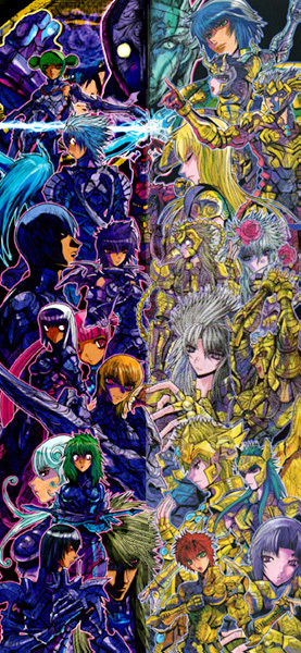 - Pontos de los océanos (divinidad) : El antiguo dios primordial que inició la Guerra. Es una de las cuatro divinidades primordiales creadas por Gaia, la Tierra, maestro de los mares, gigante marítimo que reina sobre los abismos. Divinidad de los océanos que reinó antes que Poseidón, hijo de Gaia. Posee el poder suficiente para liberar a los Titanes de los sellos de Zeus. Aconseja a Cronos y ayuda a sus servidores en su guerra contra el Santuario. Pero nadie conoce sus verdaderos objetivos. Pontos lLlevaría una protección metálica denominada Ars Magna (大いなる秘宝 (アルス マグナ), arusu maguna, "El Gran Arte"), traducido con el nombre de "tesoro supremo". Ars Magna, esta escrito con los kanjis 大いなる que significa formidable y por 秘宝 que significa tesoro. Su dureza y material del que está hecha es todavía desconocida, No se sabe si hay más Ars Magna, hasta el momento se ha mostrado sólo una de ellas, corespondiente a Pontos. Se cree que son las armaduras divinas más poderosas del Universo de Saint Seiya. La cuestión consiste en saber si Gaia, Urano, Érebo y Eros, entre otros dioses primodiales, poseen también una (Artis magnae, sive de regulis algebraicis, más conocido como Ars Magna (en latín Gran obra), es un importante libro de matemáticas escrito originalmente en latín por Gerolamo Cardano en 1545). Lugares importantes Chronos Labyrinthos El Chronos Labyrinthos es la guarida de los Titanes. Su apariencia es de una especie de enorme castillo / catedral sombrío, rodeado de 11 palacios volantes que gravitan a su alrededor, cada uno correspondiente a un Titán (el Chronos Labyrinthos se asigna a Cronos). La estructura incluye una torre del campanario y el Theos Sema brilla en la parte superior del conjunto. En el siglo XX, este lugar reaparece de la nada una vez que todos los Titanes (con la excepción de Cronos) han vuelto a este mundo. El Chronos Labyrinthos se situa a continuación en suspensión por encima del Tártaro. Los Gold Saints parten para asaltar este lugar y se enfrentarán a varios de los Titanes y sus soldados. La aldea del pueblo de los Titanes se sitúa alrededor del Chronos Labyrinthos. En japonés "Chronos" y "Cronos" se escriben de forma idéntica lo que hace difícil la distinción entre estos dioses. Lógicamente, la guarida de Cronos debería había sido nombrada "Cronos Labyrinthos", pero los kanji que Okada yuxtapone en ese nombre significan claramente "El laberinto del Tiempo", lo que les obliga a escoger la ortografía " Chronos Labyrinthos”.