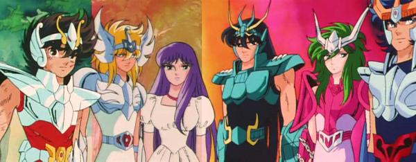 ... más que los caballeros de bronce, ¡son los 12 caballeros de oro contra quienes estos se enfrentan a partir del episodio 36 los que nos apasionan!, ¿acaso no será porque llevamos todos uno de los 12 signos del Zodíaco que personifican: Aries, Tauro, Géminis, Cáncer, Leo, Virgo, Libra, Escorpión, Sagitario, Capricornio, Acuario o Piscis?. Uno de los grandes atractivos de la obra de Kurumada es el hecho de que los signos del Zodiaco aparezcan representados por un caballero. Su potencia es desproporcionada y su carisma increíble. La batalla que libran los jóvenes caballeros de bronce contra estos semidioses es fabulosa y abunda de momentos de emoción intensa, y la que más tarde afrontarán los caballeros de oro entre sí es aún más bonita y más triste... melancolía sería la palabra que define mejor a Saint Seiya, los magníficos temas músicales de fondo obra de Yokoyama tienen seguramente mucho que ver. Desde este punto de vista, el título occidental de la serie ("Los Caballeros del Zodíaco") es un contrasentido puesto que esa denominación corresponde exclusivamente a los caballeros de oro y no a los héroes de bronce, por lo que el título japonés es el que verdaderamente debe ser considerado : "Saint Seiya", Seiya el saint (=caballero sagrado), sabiendo de antemano que Seiya es el héroe, más que sus 4 compañeros de armas que lo acompañan, lo que explica muchas cosas. Críticas, siempre el mismo esquema ! Efectivamente, mucho se ha reprochado a Saint Seiya su argumento lineal y las repeticiones. Atenea está en peligro y los caballeros de bronce logran derrotar a sus adversarios en un número superior, y cada uno protege alguna cosa : Ikki y los Black Saints guardan las piezas de la armadura de Sagitario, los 12 caballeros de oro custodian los templos que se deben atravesar uno por uno, los siete generales de Poseidón protegen un pilar cada uno ... ¿repetitivo?, un poco sí, pero no tanto, la saga de Hades no obedece a ese principio, en su primer tercio la situación es invertida, los enemigos atacan y los protagonistas son los caballeros de oro que defienden sus posiciones, y sucede lo mismo en el reino de Hades, todo es bastante original (nuevos aliados intervienen, traiciones en el campo adverso, Atenea participa en el combate). ¿Lineal?, tampoco tanto, quizás la saga de Poseidón, que es corta y poco interesante, la saga del Santuario presenta varios cambios de situación que son verdaderas sorpresas. Aspectos que si podrían considerarse repetitivos, y exasperantes, sería el comportamiento de los héroes.. Seiya recibe una paliza, escucha la voz de Atenea, se levanta una y otra vez y destroza a su enemigo de un solo golpe. Ikki aparece en medio de la batalla cuando su hermano Shun está al límite y rechaza hacerle daño a su enemigo, Shiryu acaba sacrificándose por su diosa, se quita la armadura y se queda ciego, y Hyoga siempre llora la muerte de su madre. Una revolución, a pesar de todo Lo que gusta en esta serie y constituye su fuerza es su concepto. Además de contribuir a inventar los códigos clásicos del shonen con Dragon Ball, como la fuerza invencible de la amistad, el espíritu de sacrificio por una causa, superar y llegar siempre más allá de sus propios límites. Saint Seiya es una obra genial gracias a su Hipermito, una mezcla de todas las creencias y mitologías dle mundo, y todo ello sin que parezca chocante, lo que añadido al principio de la jerarquía de caballeros sagrados vistiendo armaduras bajo la protección de una constelación forma un manga de una riqueza impresionante y muy atractivo. Diferencias dispensables o muy discutibles, para lo peor y lo mejor Es un clásico de las adaptaciones sucesivas manga-anime, siempre hay añadidos que no existen en el manga, desgraciadamente Saint Seiya no escapa a la regla. Numerosos personajes fueron creados y aunque algunos estén bien logrados podemos cuestionar su legitimidad. Al final de la saga del Santuario, el anime atrapó al manga, se tomó la decisión de crear la saga de Asgard, una saga inédita para dar tiempo a que Kurumada avanzara su manga. Esta parte es otro ejemplo de la falta de maniqueismo de Saint Seiya. Los adversarios de los héroes no son forzosamente malos, sino todo lo contrario, son víctimas de los acontecimientos y no tienen otra elección que enfrentarse a los caballeros de bronce persuadidos que son los emisarios del mal. En un principio la saga de Asgard iba a ser una OVA para la TV que uniese la saga del Santuario y la de Poseidón, pero debido al éxito que tuvo la película "La gran batalla de los dioses" decidieron hacer la saga de Asgard tal como la conocemos. Un encadenamiento difícil De hecho tras la saga de Asgard, la saga de Poseidón se presenta pálida pues presenta el mismo patrón narrativo, enemigos mucho menos carismáticos y desarrollados, aparte de Issac y Kanon todos los demás mariners no tienen pasado ni personalidad ... y a pesar de mostrar algunos elementos nuevos en esta parte, el público se cansó y ello motivó la muerte prematura de la serie después de 114 episodios, y antes de la última saga, dejando a la audiencia con un pseudo final abierto poco satisfactorio!.