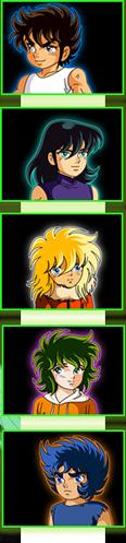 Todos ellos van a unirse progresivamente alrededor de Atenea y aceptarán su trágico destino, esforzándose en poner su vida al servicio del bien y de la humanidad amenazada. Cada uno de nosotros, en el fondo de su corazón, es uno de esos 5 pequeños caballeros de bronce cuyo objetivo es mejorar sus habilidades y destreza para alcanzar el objetivo último. Los antagonistas 1