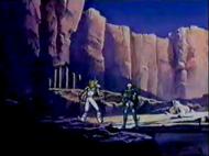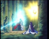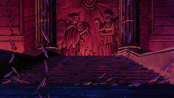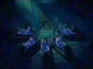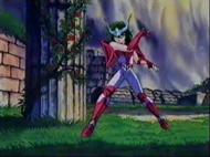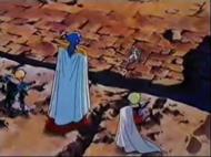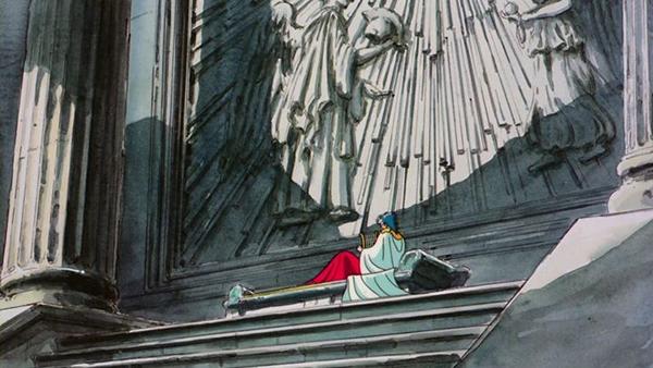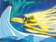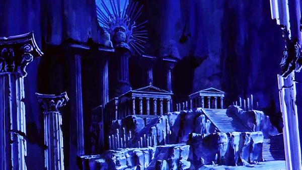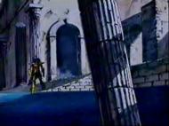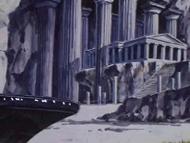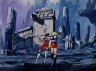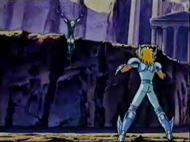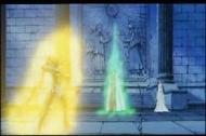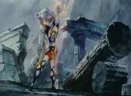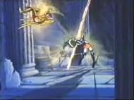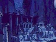 la de Atenea esconde su armadura divina y protege el Megas Drepanon. Esta estatua no parece ni real, da la impresión que aparece momentáneamente para simbolizar el pasado, la era mitológica en la que todos los dioses vivían en el Olimpo, una época bella y feliz que se terminó, acompaña la derrota del adversario.