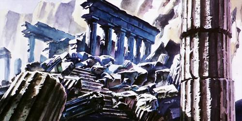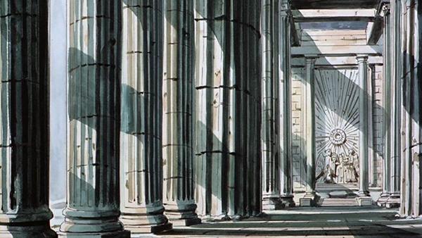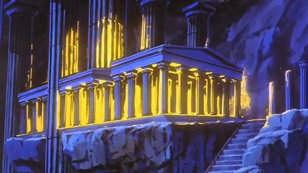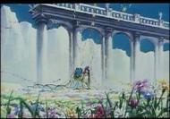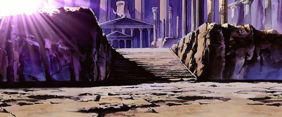 Dignity Hill Dignity Hill ディグニティ・ヒル pron. jp. diguniti hiru (Colina de la dignidad) allí se encuentra el Santuario del Dios Abel, conjunto arquitectónico que también forma parte integrante del Santuario de Atenea, siendo un lugar de acceso estrictamente prohibido y que ha permanecido escondido desde tiempos mitológicos. Esta imagen es una escenario de fondo de Dignity Hill, situado en una zona prohibida del Santuario, lugar donde se encuentra el Templo de la Corona del Sol de Abel en la tercera película. Otra imagen incorporada en un disco extra de la serie.