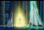 La estatua final de Abel y Atenea La última singularidad de Dignity Hill a señalar, es la estatua que representa a Abel y Atenea todavía jóvenes, provando que Atenea y Abel eran dioses muy cercanos antes de que este quisiera purificar la Tierra. Da la impresión que la estatua simboliza que para los dioses todo es un juego, en esta ocasión ha vencido Atenea pero ambos se citan para lo próxima reencarnación. Atenea tiene a los hombres en su corazón, combate por los seres humanos, aunque para ello deba enfrentarse a su propio hermano Abel. Las divinidades son seres inmortales y omnipotentes, se enfrentan y se aman... pero no se odian. El propio Seiya está confuso en el Tenkai Hen porque no logra comprender la razón por la que los seres divinos se comporten de forma tan absurda, y la respuesta seca de Apolo es: "un dios es un dios".