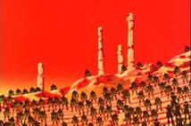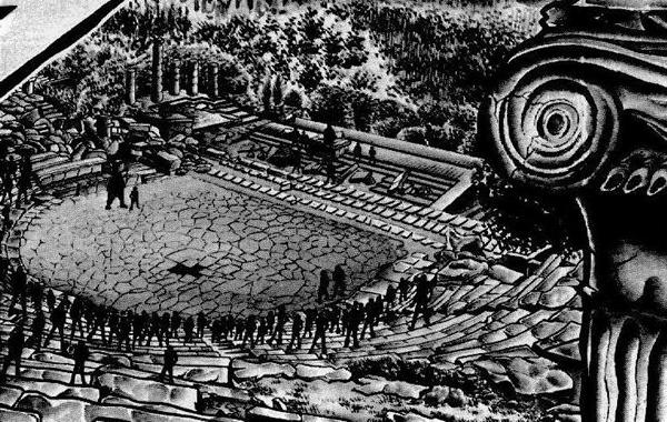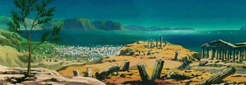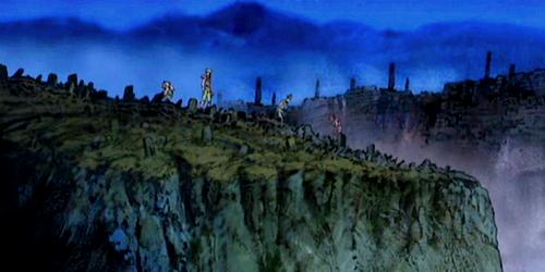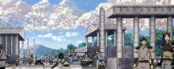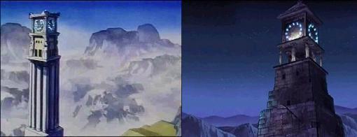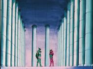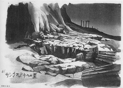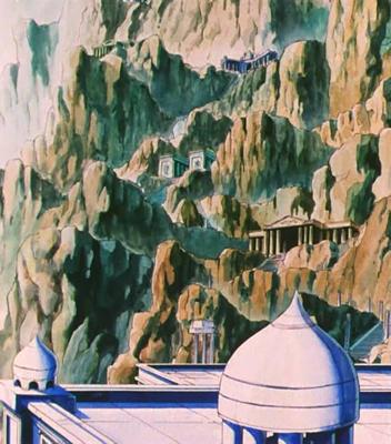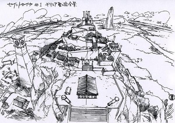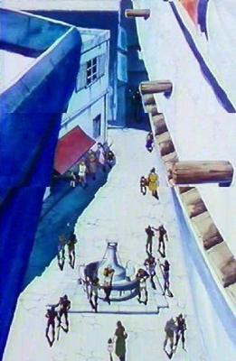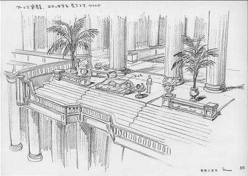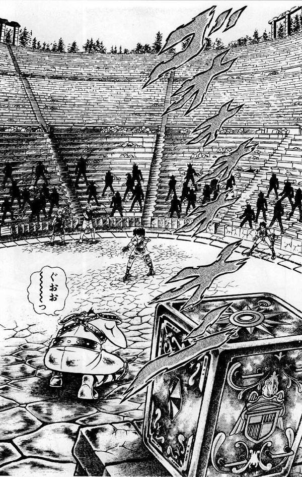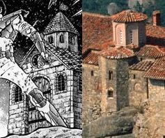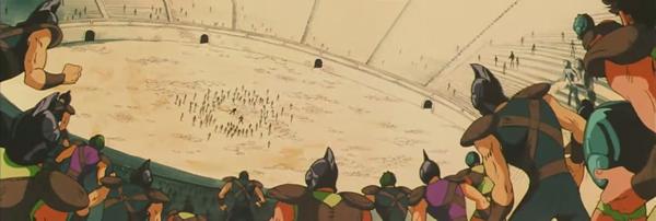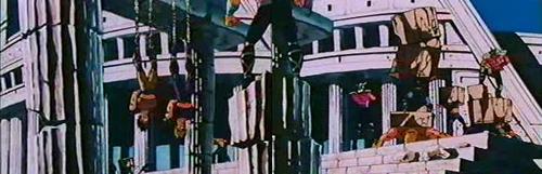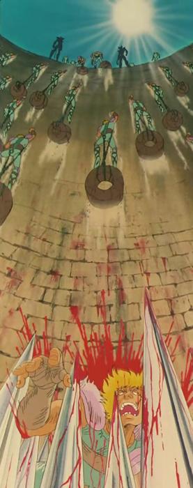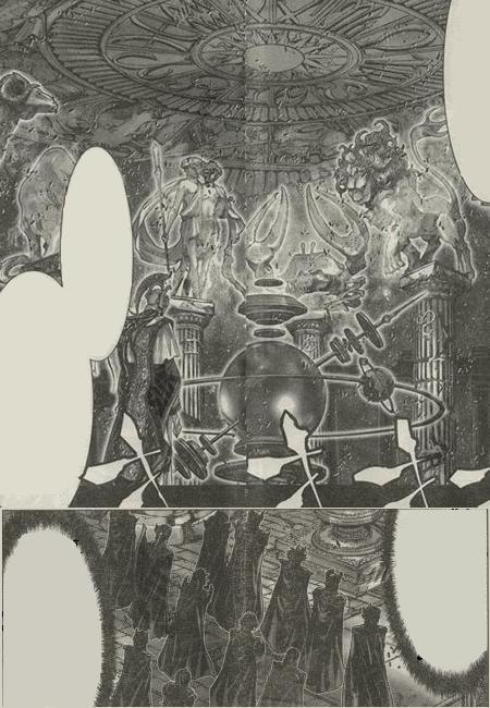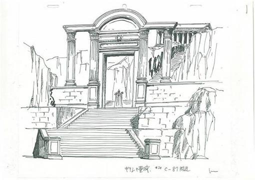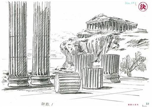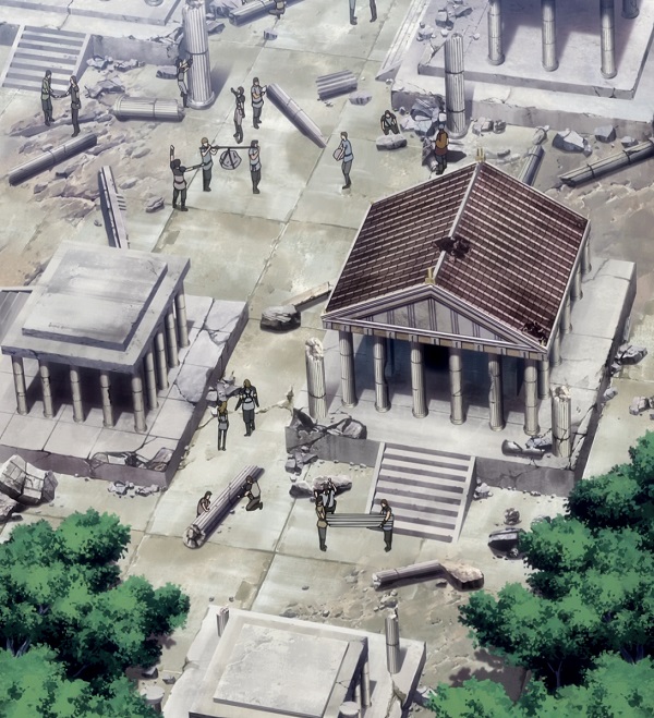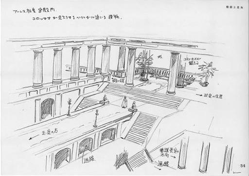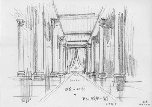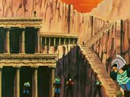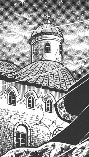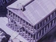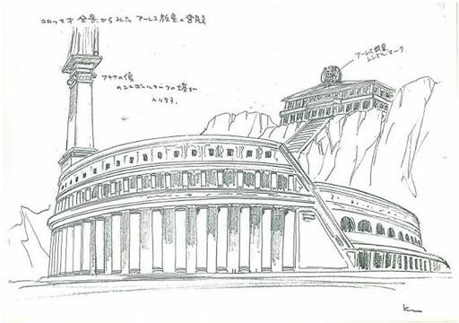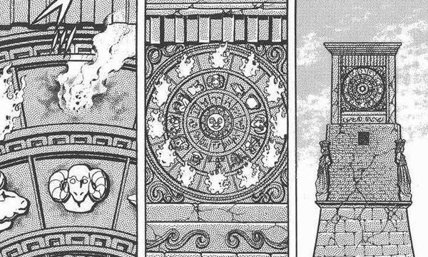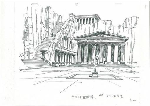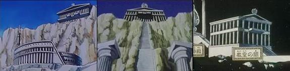 dato, que prácticamente cierra el tema: Lástima que en el anime (episodio 71) fue retirada completamente la huella de la influencia de la arquitectura renacentista y el monasterio del manga fuera sustituido por un templo de columnas dóricas excavado en el interior de las rocas.