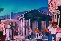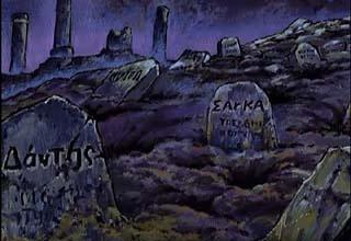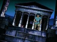 Pero, aún quedan algunas explicaciones... el Coliseo del manga es ese pequeño teatro en ruinas (1), donde Seiya obtiene su armadura tras vencer a Cassios, que como sabemos fue inspirado en el edificio real del Teatro de Dionisio, no habiendo otro Coliseo. En el anime vemos a estos dos monumentos (1 y 2), dos arenas o coliseos, particularmente uno más grande inspirado en el Coliseo de Roma donde Shaina se desfoga sacudiendo a Marin y que está ligado al Templo del Pontífice. No se puede afirmar con certeza, pero el Cementerio