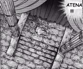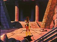 Esta escena es célebre, ¿dónde ocurre?... pues suponemos que en un templo habilitado con aposentos, ya sea el del propio Pontífice o un templo exclusivo para Atenea. Entre el templo del Pontífice y el altar de Atenea no debe haber nadie, o como mucho guardias de protocolo, puesto que no hay necesidad de alta seguridad ya que los Gold Saints quedan al otro lado.
