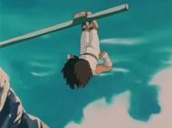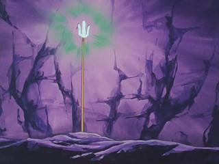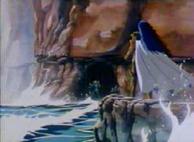Kanon es salvado de ahogarse por el Cosmos bondadoso de Atenea, aunque él lo ignora. En el fondo de la caverna-prisión, al otro lado del espeso muro de confinamiento, hay una gruta rocosa oculta a la que nadie sabe cómo se accede normalmente, detrás de la pared, en otra cámara de piedra que no tiene un acceso aparente, está escondido el tridente de Poseidón, sellado por Atenea. Kanon llega a este lugar y rompe fácilmente el sello de Atenea, que con el paso del tiempo ha perdido su poder, lo que provoca el hundimiento del suelo, siendo arrastrado bajo el océano hasta un gigantesco santuario submarino del Mediterráneo. En el manga, es en la cumbre de Cabo Sunion donde Tetis conduce años más tarde a Julián Solo frente al tridente de Poseidón.