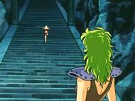 Marin explica que fue a Star Hill, y Shaina le hace una observación similar a la de Shion. Su reputación quiere que sea imposible acceder a la cumbre, incluso para un caballero. No obstante, dos Saints lo lograron desobedeciendo la prohibición. Hace trece años de ello, Saga, Gold Saint de Géminis, subió secretamente y mató al Pontífice Shion, dejando su despojo reposar sobre la base del altar del pequeño templo que corona la cima. El segundo fue un Silver Saint, Marin del Águila, aunque superó serias dificultades para llegar allí. Descubrió entonces el despojo mortal de Shion... (aunque no se le parezca, eso es otro tema..), el antiguo y verdadero Pontífice asesinado por Saga 13 años atrás, que yace inmerso en un aura azul, justo en el altar de las plegarias, escondido en ese lugar lejos de la mirada de todos.