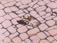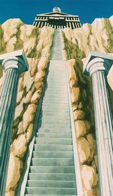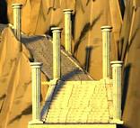 de Ateneas. Una pequeña escalinata flanqueada por dos estatuas (que parecen