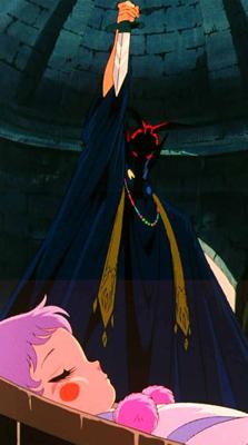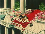 escarlata). En el manga la diosa descansa en un lecho situado en una especie