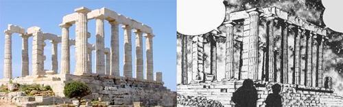 del Templo de Poseidón, situado en el Cabo Sounion. Éste dataría del siglo