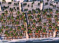 construido en altura, sobre la vertiente de una montaña y no