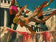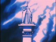 de la monumental estatua de Atenea cayó por el enorme precipicio sobre