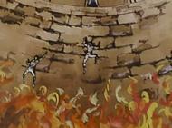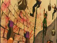 Fanart de Carlos Alberto Lam Reyes (Perú) La ventana con barrotes de la prisión tiene vistas al mar, y se sitúa justo por encima del nivel del agua, cuando la marea está baja. Si la marea está alta, el agua del mar puede fluir a través de los barrotes y desbordar el confinamiento. Aunque esto no siempre ahoga y mata a los presos, es una tortura horrible.