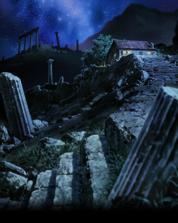 El Santuario de Atenea es un lugar aparte, rodeado y escondido por una gran cordillera montañosa, cuya fase de desarrollo arquitectónico parece como bloqueada en la época de la Grecia antigua ギリシア (Girishia) “Grecia”, fuera de los tiempos actuales. Sin embargo, está ubicado en las colinas cercanas al Partenón, al norte de la ciudad de Atenas (Athens, en griego Athínai o Athína), ciudad con el aspecto normal de una ciudad del siglo XXI, situada en el sureste de Grecia, capital y urbe más importante del país. Atenas está situada en la llanura del Ática (91 m), en la Grecia continental, está rodeada de montañas por tres de sus lados, de entre las que destacan el monte Párnis, el Pentelikon (Pendéli) y el Himeto (Imittós). Dos pequeñas corrientes fluviales cruzan la ciudad, el río Cefiso (Kifisós) al oeste y el río Iliso (Illisós) al este. Capital del nomo y de la región del Ática, forma una región metropolitana unificada junto con su puerto: El Pireo, que se encuentra a 8 km al suroeste, en el golfo de Egina. Atenas domina la vida económica, cultural y política de Grecia.